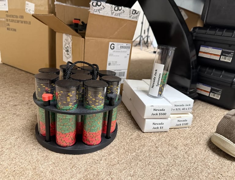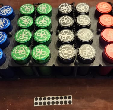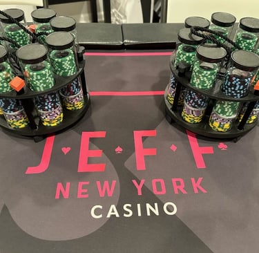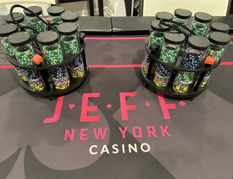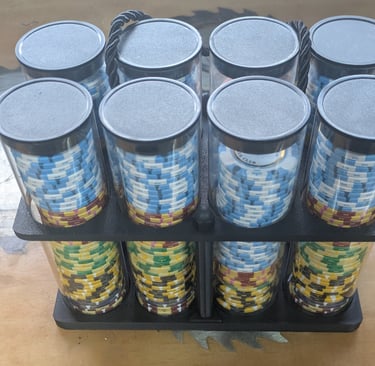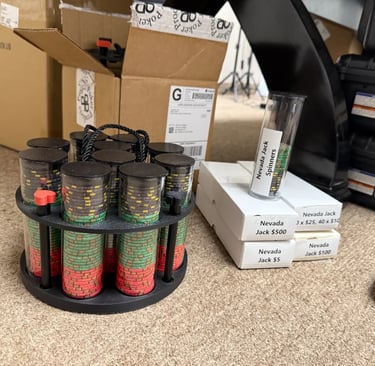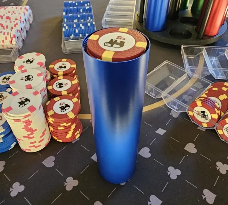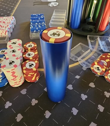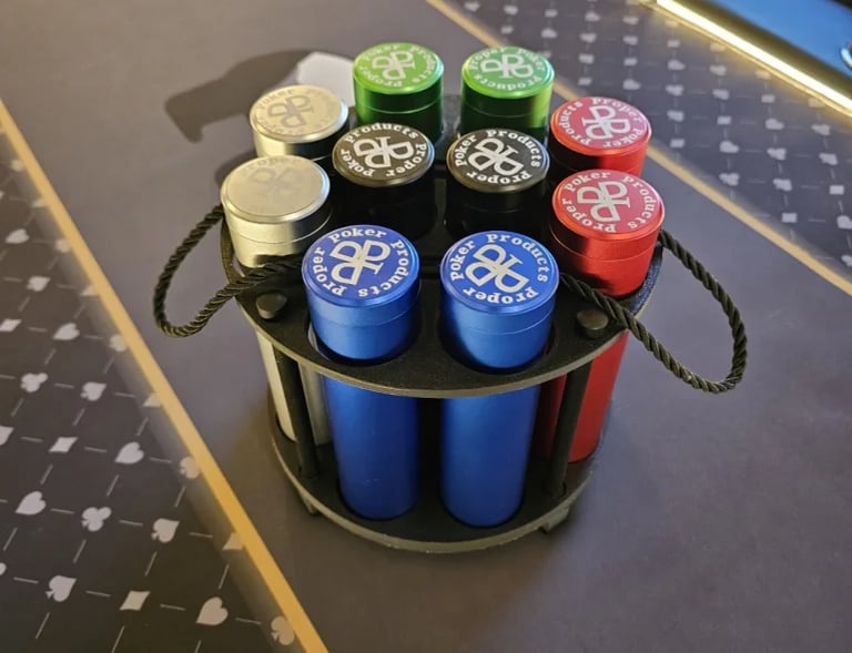 At Proper Poker Products, we strive to elevate your home poker games, making it easier for friends and family to gather and enjoy unforgettable nights filled with fun and excitement. We have developed products that will take the headache out of host poker nights. If you've played a home game in the last few decades you are probably familiar with the aluminum briefcase. You know the one that if you open the wrong way all the chips spill. The tube and rack system makes dumping chips a thing of the past. Also you can keep pre-determined buy in safely in the individual tubes so you can quickly hand out chips with out counting out new stacks. We also offer versions with a bank tube that has a lever opening to accept buy ins without having to open up access to all the cash. This helps with security and to keep bills from flying away. We will not stop developing new tools for the game but we are happy to offer what we have ready for your house game now!